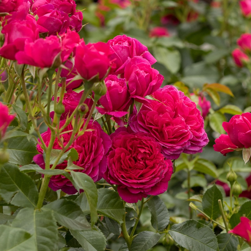 Pędy długie, dość sztywne, nieco pochylone pod ciężarem kwiatów, niezbyt kolczaste.